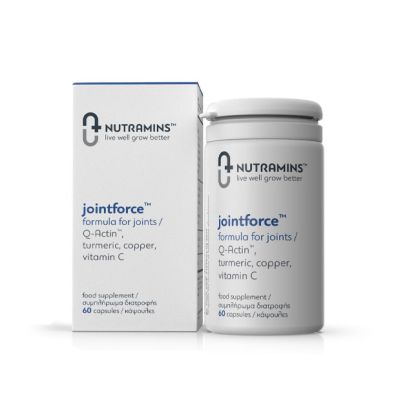 Το jointforce™ της Nutramins™ με Q-Actin®, κουρκούμη (κουρκουμά), χαλκό και Βιταμίνη C είναι ένα επιστημονικά σχεδιασμένο, κλινικά αποδεδειγμένο μίγμα φυτικών εκχυλισμάτων, βιταμινών και ιχνοστοιχείων που σχεδιάστηκε και παράγεται αποκλειστικά από τη Nutramins™, ώστε να συμβάλλει στη φυσιολογική λειτουργία των αρθρώσεων και τη διατήρηση του φυσιολογικού σχηματισμού κολλαγόνου και συνδετικού ιστού.